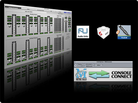 MIOConsoleConnect is built upon exclusive Metric Halo technology that allows the MIOConsoleConnect plugin (which is available in the AU, VST and RTAS formats) to connect to Metric Halo’s MIOConsole control application. The connection provides bi-directional communication between the host and MIOConsole, allowing the host to load the complete state of your MIO system (for all the units attached to your computer) and save it automatically and completely in the session file for your project.