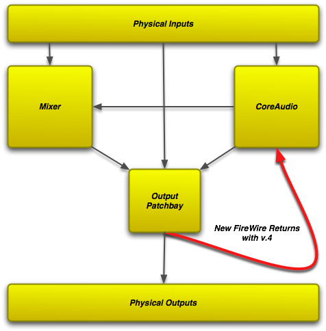 For example, you can use the FireWire returns to route ANY audio from ANY CoreAudio application to our award winning SpectraFoo application.