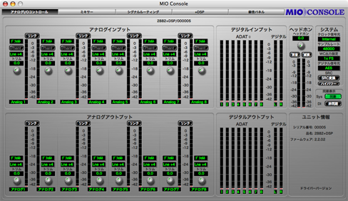 Metric Halo has updated the drawing system used in the MIOConsole UI to better integrate with the look of Mac OS X. MIOConsole also has enhanced the use of antialiased text and localization support including a complete localization for 日本語 (Japanese).