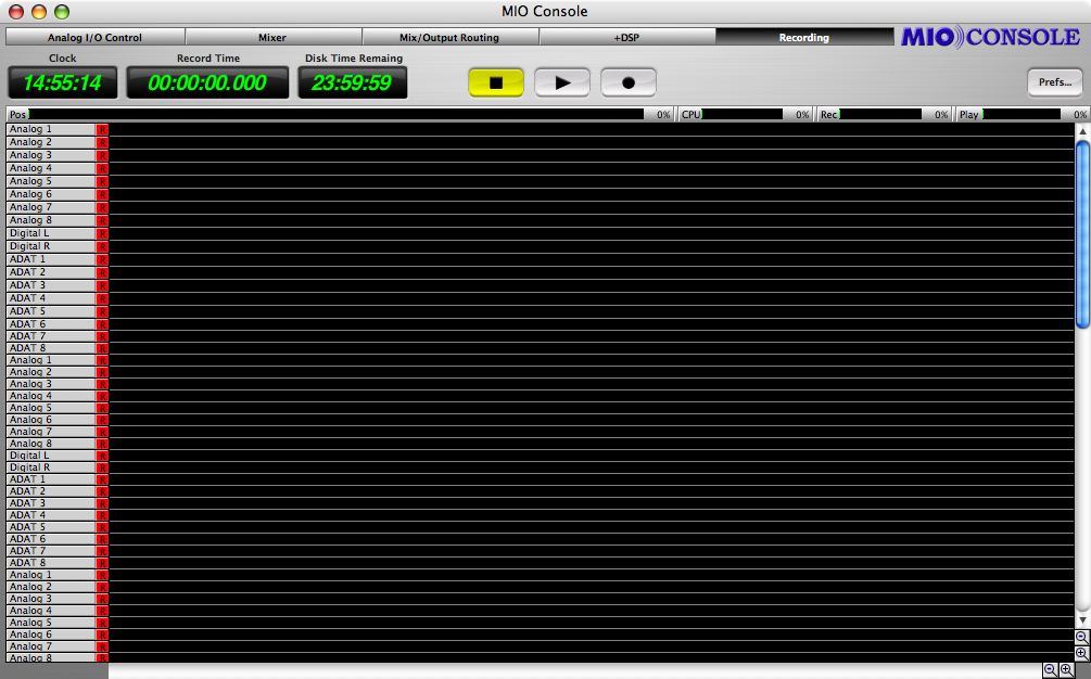 The other big news in this release is that MIOConsole is now a Universal Binary! It runs native on both PPC and Intel. Performance boost on Intel is rather large (2-3 seconds to launch rather than 15-18 seconds). This update enables large channel-count recordings using the Record Panel on Intel Macs, and maintains the efficiency that you have grown accustomed to on PowerPC.New Look